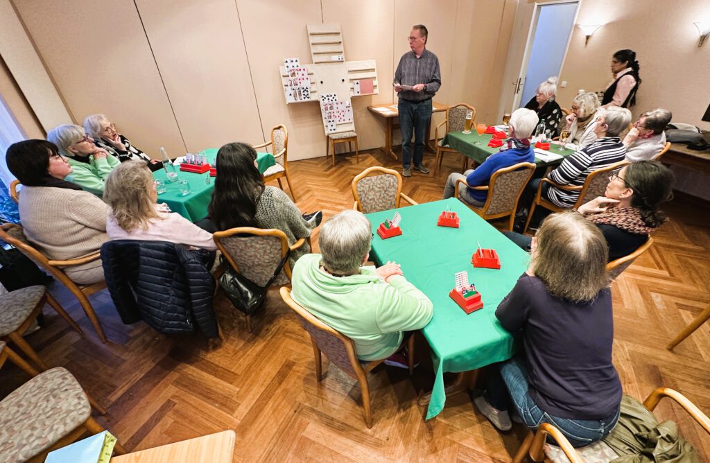Seit Anfang Januar bietet der Bridge Club Emsdetten einen Kurs für BridgespielerInnen, die nach dem Anfängerkursus ihr Bridgeverständnis verbessern wollen. Laurenz Heeke unterrichtet jeden Dienstagabend 3 Stunden bis zu 20 Bridgebegeisterte Spielerinnen.